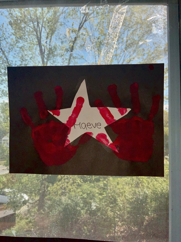 We made our own Walk of Fame (except it was a window display!) and Hollywood Stars. Students cut out stars (pink construction paper is ideal, we only had copy paper) and glued them to precut black construction paper. Then I painted both of their hands with red paint and they got to press their hands to the stars – just like celebrities do when they’re being honored with their star! Students loved seeing their name and handprints on display.